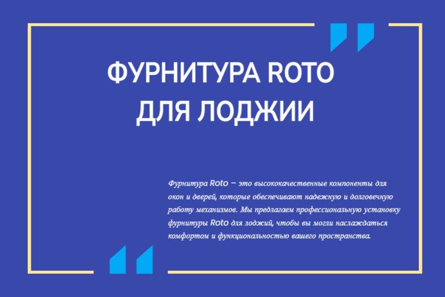 Наша строительная бригада имеет опыт в установке фурнитуры Roto и гарантирует высокий уровень сервиса и качества работы. Мы учитываем ваши пожелания и особенности вашей лоджии, чтобы создать идеальное решение для вашего комфорта и удобства.